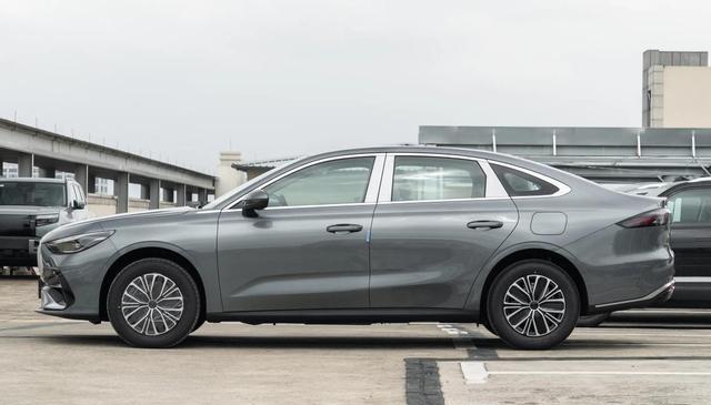 车身侧面采用双腰线贯穿式设计,为车身增添了层次感,没有复杂的型面变化,简洁有力的车门筋线勾勒出动感的车侧姿态,传统式的门把手没有跟风采用隐藏式设计,兼顾实用性和成本,根据不同配置配备16英寸和17英寸两种轮圈。车身长宽高达到4806/1886/1490mm,轴距2756mm,定位A+级轿车。外观提供沁釉蓝、丝锦银、脂玉白、曜变黑、砚染灰五款颜色选择。