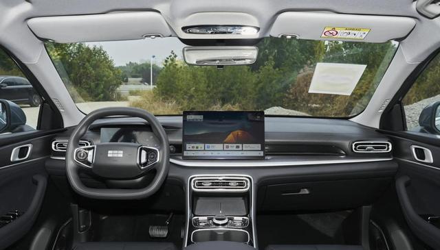 内饰方面。吉利银河6内部装饰提供的配色有澄湖映雪白、苏堤暖棕、烟雨墨黛三款颜色,中央扶手区域配备荷塘涟漪旋钮,空调出风口融合西湖涟漪回形纹理与传统回字纹。中控台采用了14.6英寸中控高清大屏+10.25英寸全液晶仪表设计,配备7nm龍鹰一号自研车规级芯片,保留了许多实体按键提高操作的便利性,车机系统搭载Flyme Auto智能座舱,反应灵敏,并支持HUAWEI HiCar和Carlink等车手互联功能。