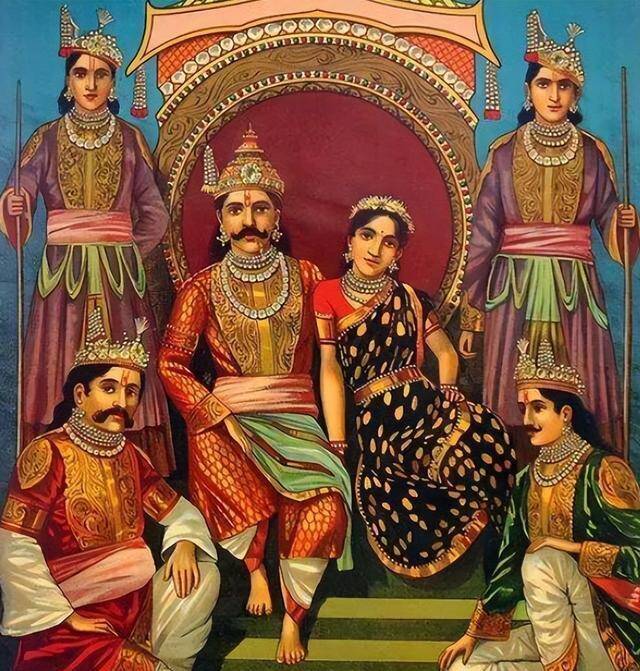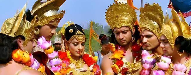 原本,这是一段属于两个人的婚姻,但王子的母亲,以儿子射中5箭为由,要求其他4个儿子,一起“享用”黑公主。黑公主倒是不愿意,但她毕竟只是个“赌注”,也无法反驳王子射中5箭的战果。于是,黑公主被迫嫁给了5个王子,之后他们一家去荒芜的地方建国,便有了后来的德里。