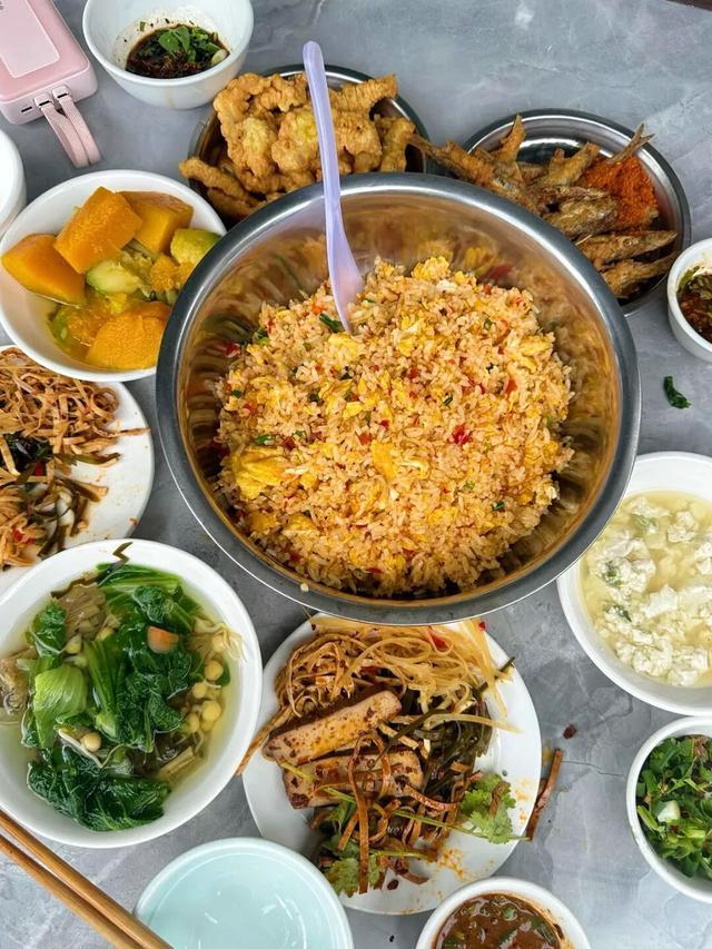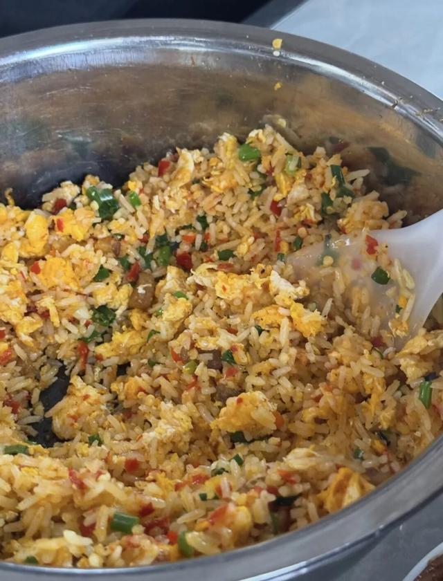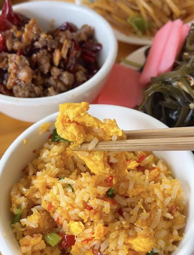 金黄的蛋液与猪油在铁锅中热烈相拥,葱花与饭粒在师傅的狂热翻炒中交织出诱人香气,吃起来香而不腻,再配上一口酸爽解腻的泡萝卜,简直是人间至味。