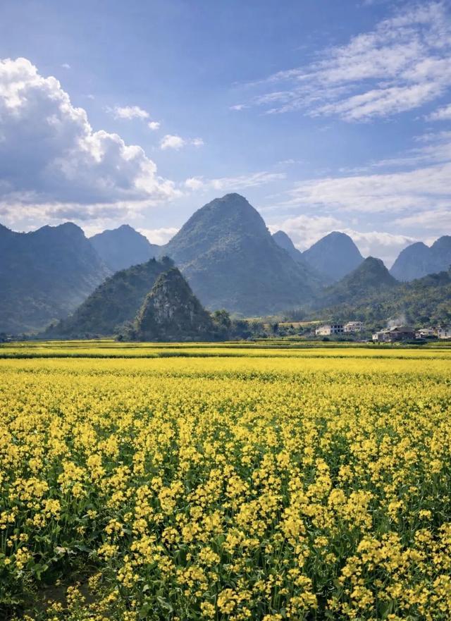 全国最早盛开的油菜花海,是这幅画卷的底色;