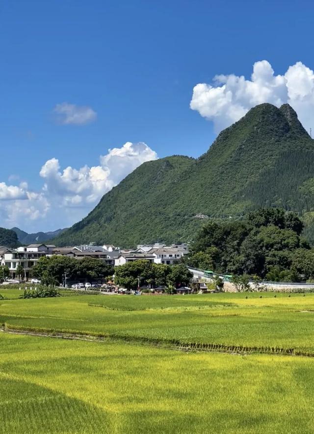 游玩万峰林,最惬意的方式莫过于租一辆电瓶车,沿着观景长廊自由骑行。车轮碾过乡间小路,一边是翻涌的金色花浪,一边是错落有致的布依族村寨。