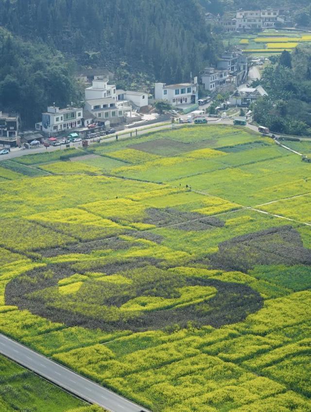 八卦田、福字田等独特的地貌景观,在金色的花海中勾勒出大地的艺术纹理,每一处细节都透着自然与人文的巧妙融合。