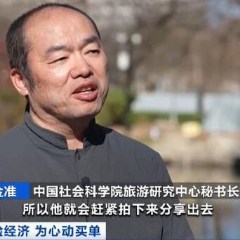 中国社会科学院旅游研究中心秘书长 金准:当游客见到这些点之后,就是在网上老看到它,我终于看到它了,我要告诉别人我看到它了,所以他就会赶紧拍下来分享出去,这样就形成了一个一个传播的从小浪潮到中浪潮到大浪潮,不断涌流。
