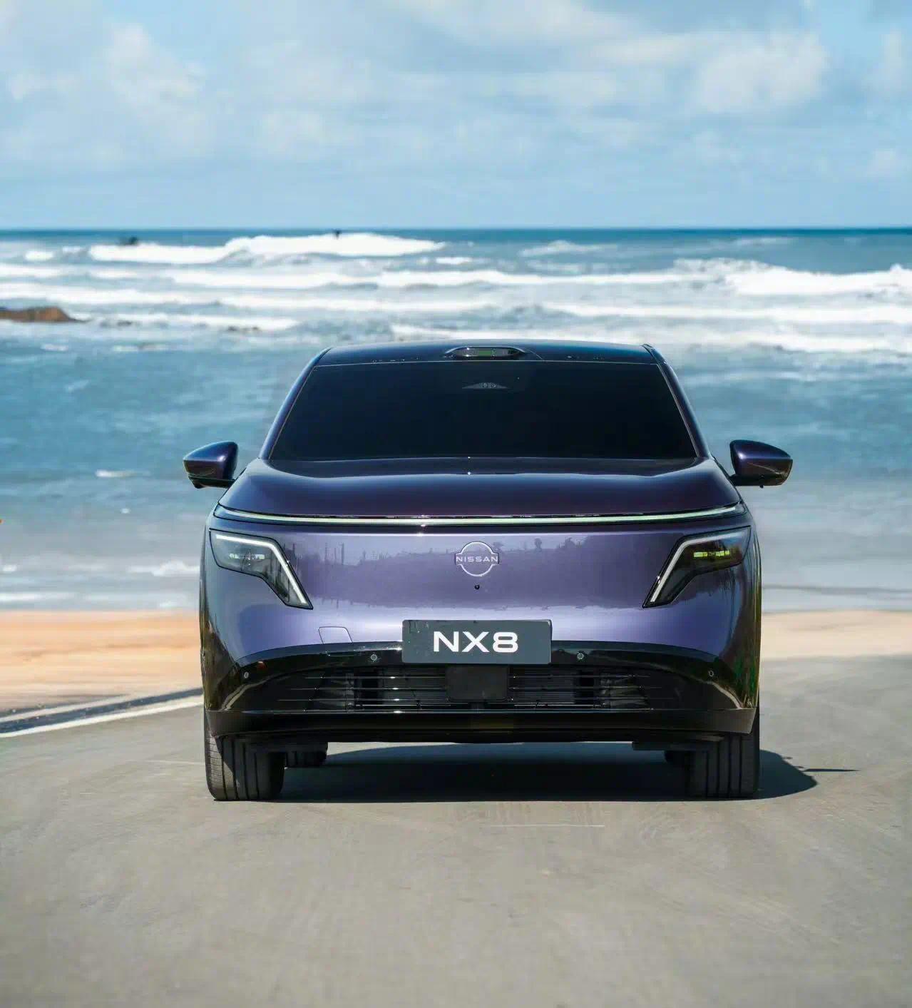 东风日产NX8属于五座中大型SUV,车身长宽高分别为4870/1920/1680毫米,轴距2917毫米,其中纯电版本带有容积95升的前备厢。在此基础上,东风日产NX8可选摩纳哥紫、墨海蓝、翡冷翠绿、曜石黑、流光银、霜雪白等六种单色漆面,同时提供曜石黑+霜雪白双拼车色的选项。